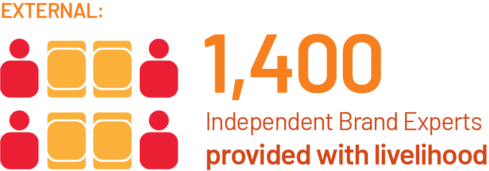 External: 5,000 Independent Brand Experts will be provided with livelihood opportunities, and 25,000 sari-sari stores will be provided with financial credit by 2030