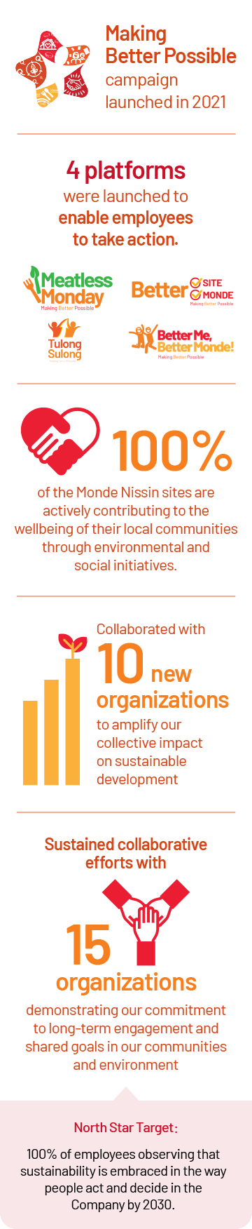 Better is Possible if we work together. Within and outside Monde Nissin Corporation, we collaborate to promote our vision of a sustainable world.